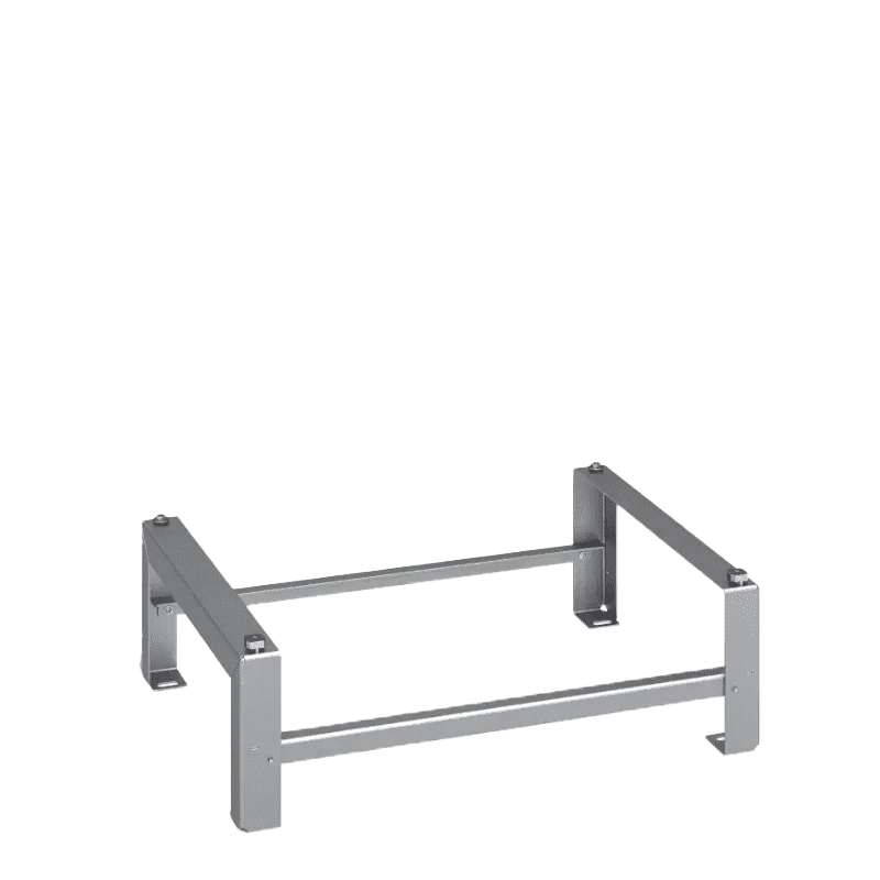 Robuster Montagesockel aus 3 mm starkem, feuerverzinktem Stahl für sicheren Stand und zuverlässige Lastaufnahme der Wärmepumpe. Der Sockel ist für die AERA-Serie konzipiert und wird inklusive vier Befestigungsschrauben (M10×50) sowie passender Muttern und Unterlegscheiben geliefert – für eine stabile und langlebige Installation.